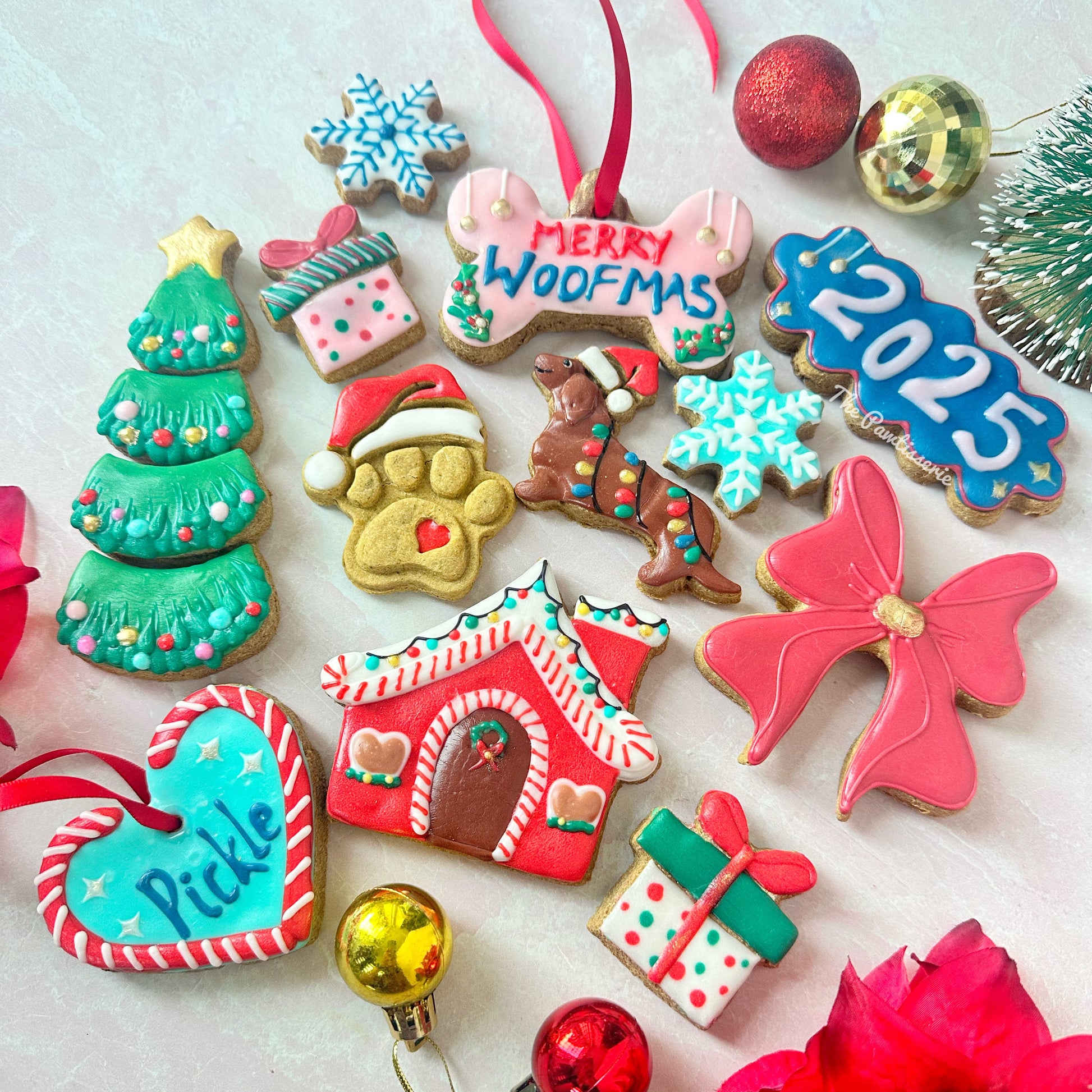 Chicken Liver flavoured cookies made into custom name ornaments , a gingerbread house , snowflakes and many more beautiful designs, itβs the perfect way to let your dog join in on the holiday cheerβ€οΈ